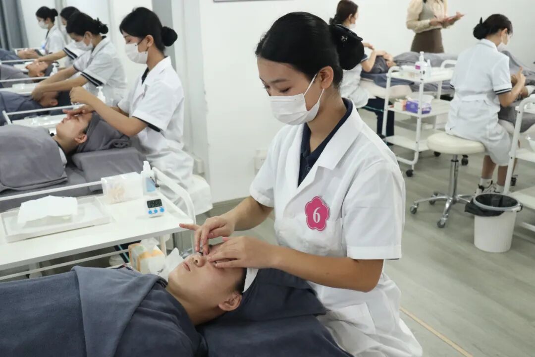 本专业采用“校企双元、岗课赛证”一体化培养,以差异化产教融合为核心竞争力,对接头部美容连锁品牌、皮肤管理中心及美妆企业等优质资源。校企共同制定人才培养方案,将真实项目与岗位标准融入课程,并建设校内仿真实训基地,配备智能美容仪器与产品陈列区,支持学生完成客户接待、项目实操、营销策划等全流程模拟。