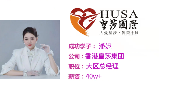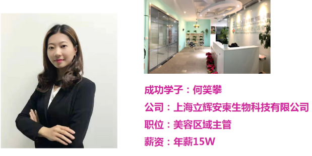 学子潘妮(第45届世界技能竞赛美容项目广东省选拔赛三等奖)目前任职皇莎集团大区总经理年薪40w+