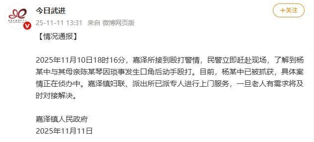 近日,一段儿子殴打93岁母亲的视频在网络流传优配股,引发众怒。视频中,一男子对风烛残年的老人扇耳光、拽头发、按地殴打,令人发指。11月11日,江苏常州市武进区嘉泽镇人民政府通报证实,涉事男子杨某中因琐事与母亲陈某琴发生口角后动手殴打。目前,杨某中已被抓获,案件正在侦办中。