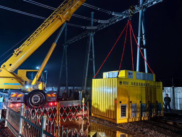 “起吊!注意平衡!”“落地!”随着吊车指挥员铿锵有力的指令,重达8吨的12.5兆瓦车载直流融冰装置精准落位至220千伏管营变电站110千伏设备区。